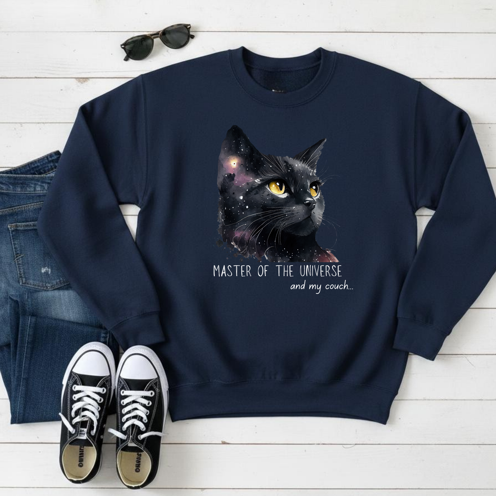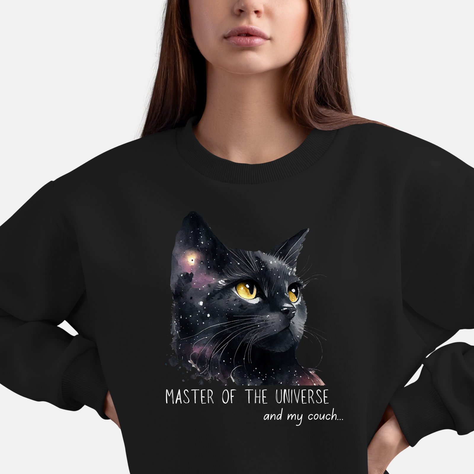 Cosmic Cat Sweatshirt, Spiritual Feline Art Gift